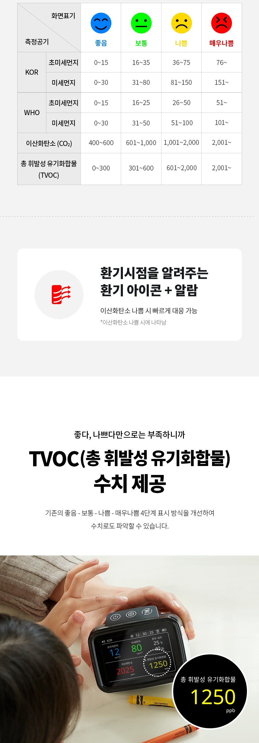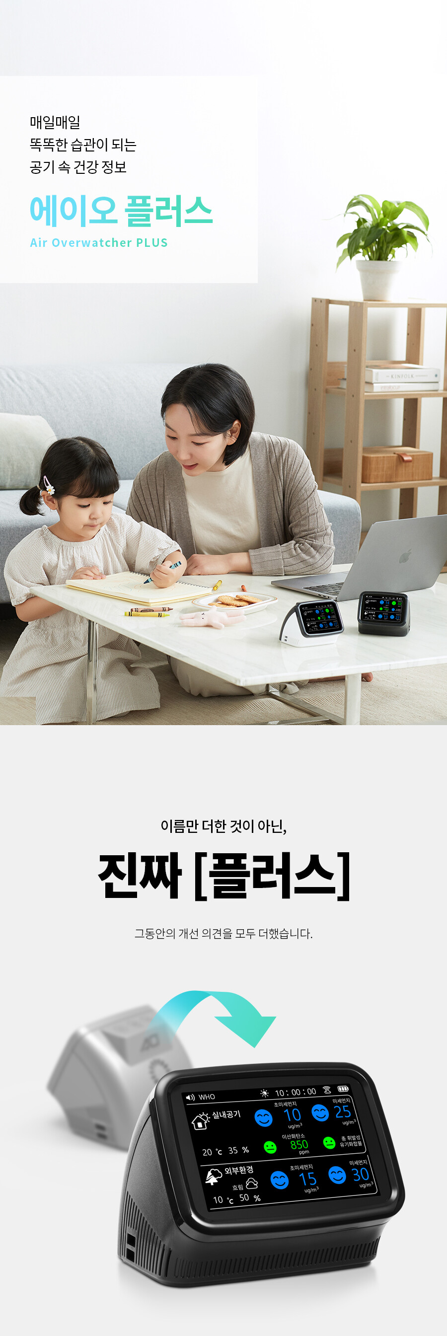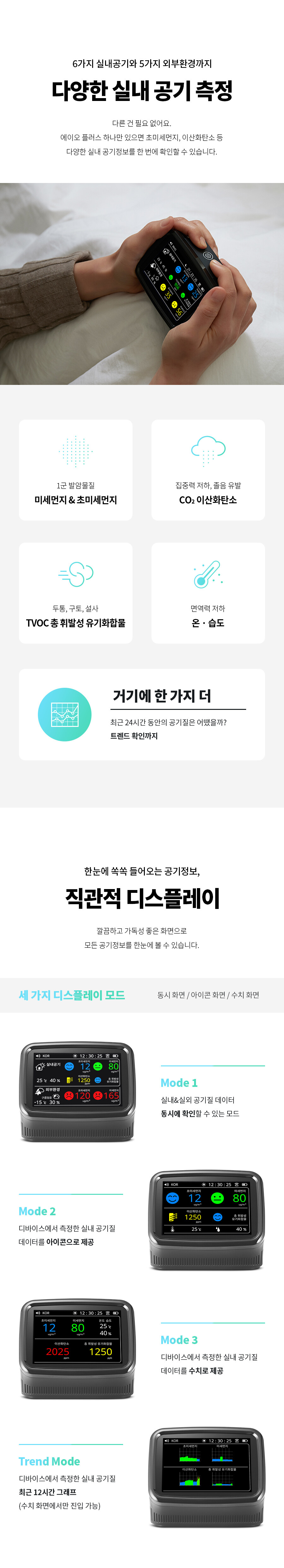미세먼지 이산화탄소 측정기 에이오플러스 온습도계 휘발성유기화합물