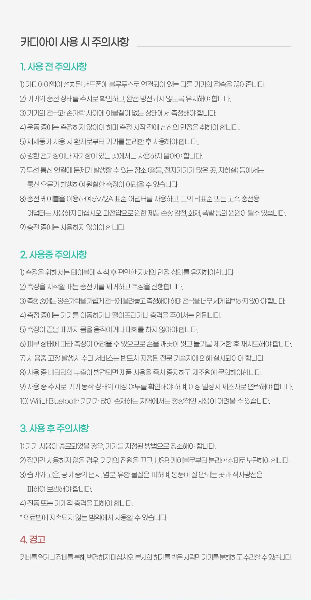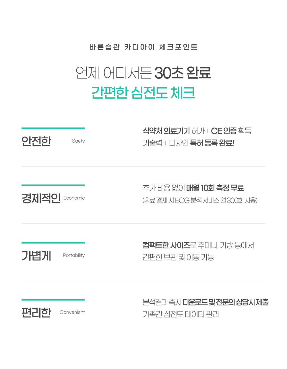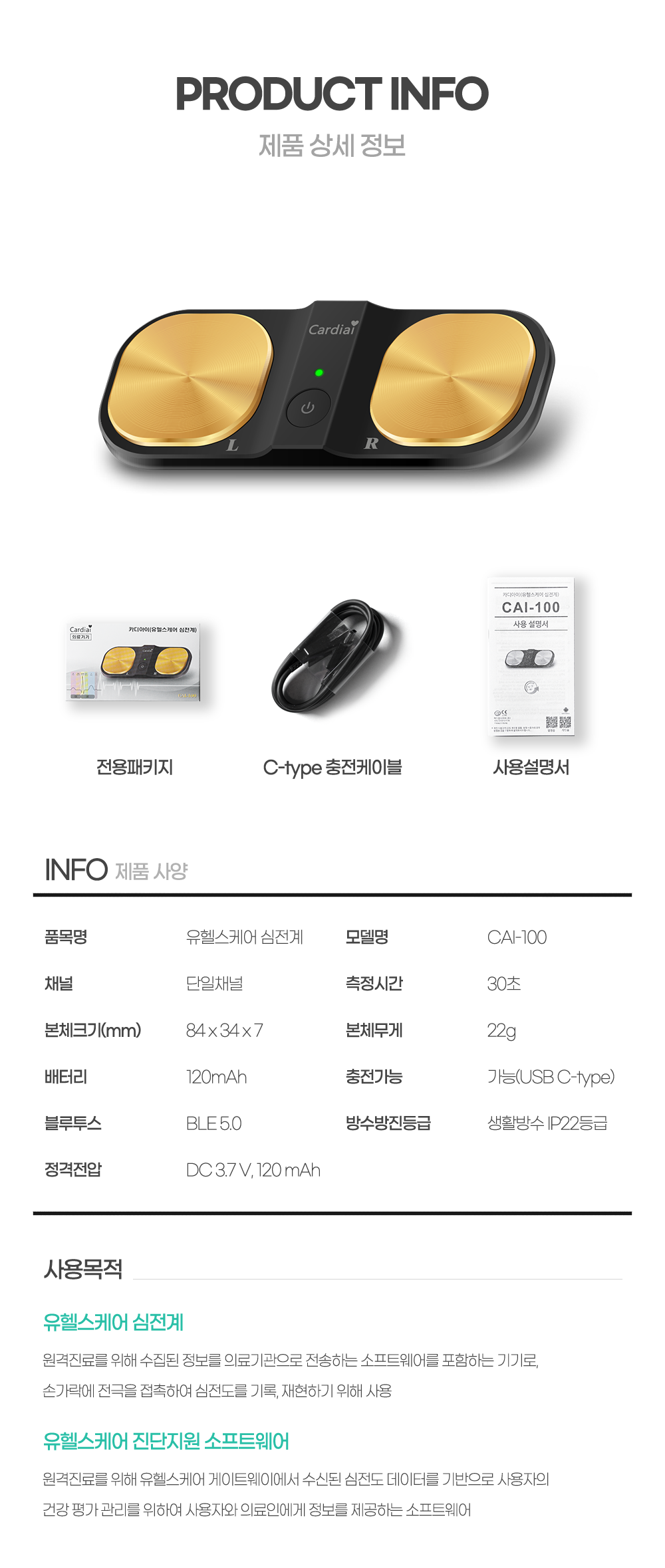 카디아이 휴대용 심전도 측정기 CAI-100 심전계 심박변이도 부정맥 검사