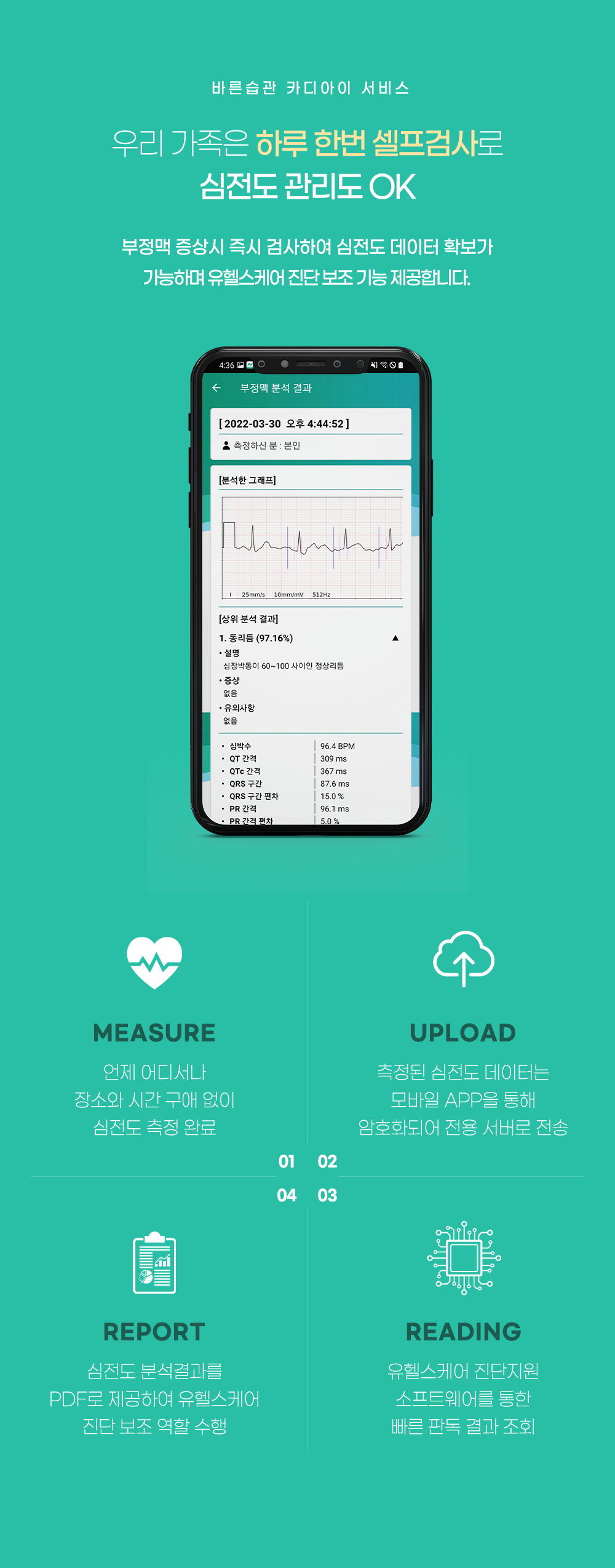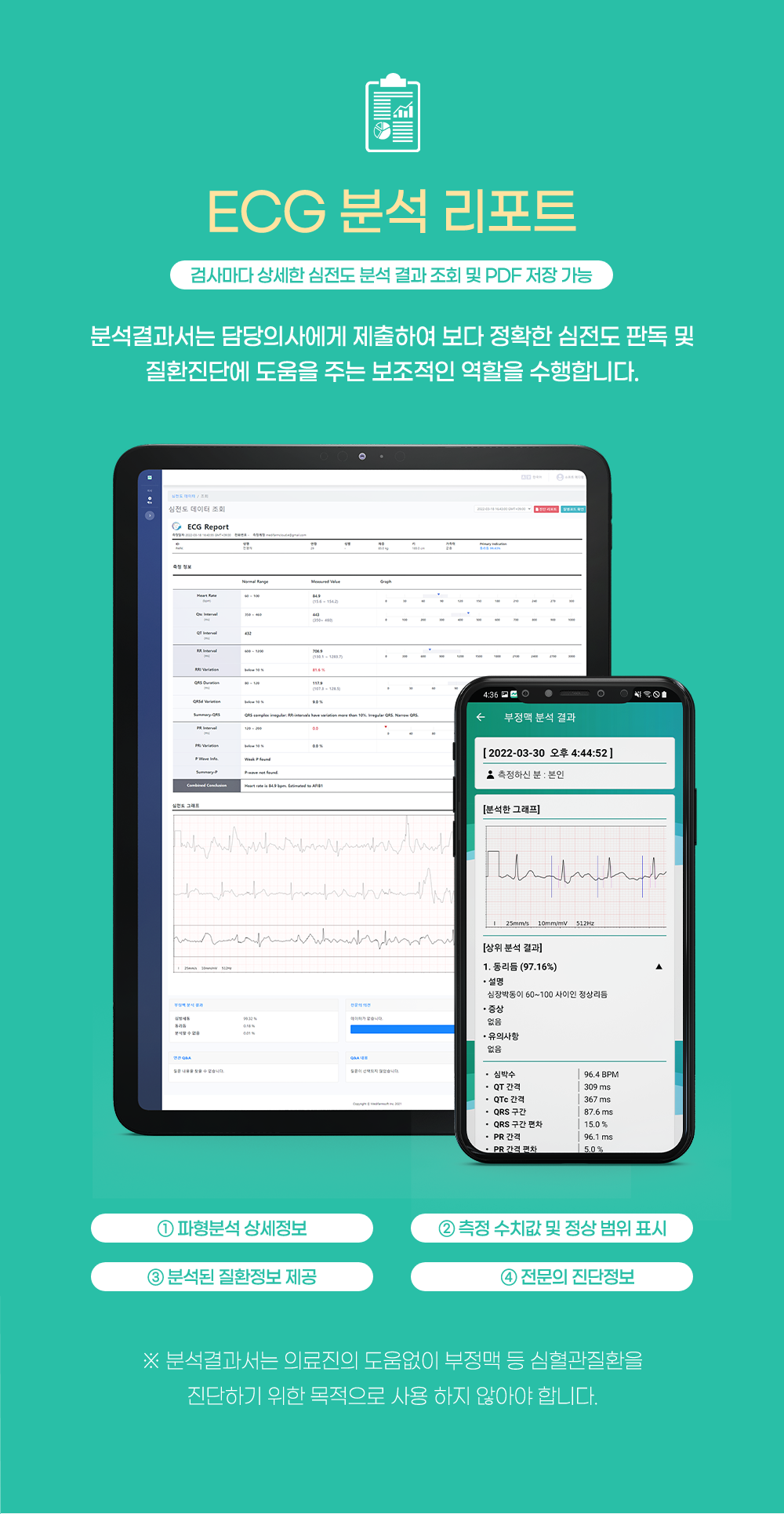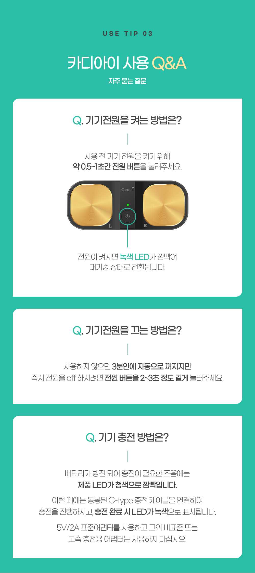 카디아이 휴대용 심전도 측정기 CAI-100 심전계 심박변이도 부정맥 검사