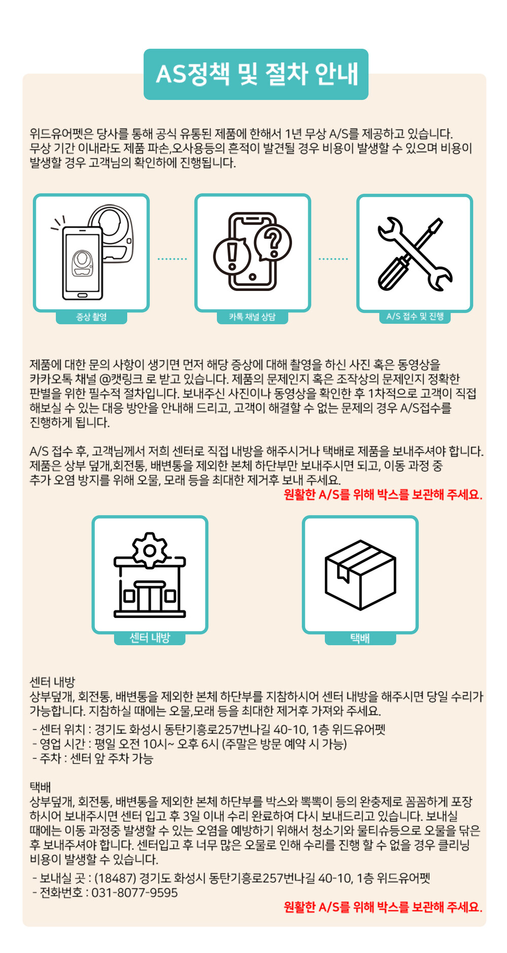 A/S 관련 문의 : 위드유어펫 고객센터 1544-1720 문의 가능 시간 평일 오전 10시~오후 7시 주말.공휴일 휴무