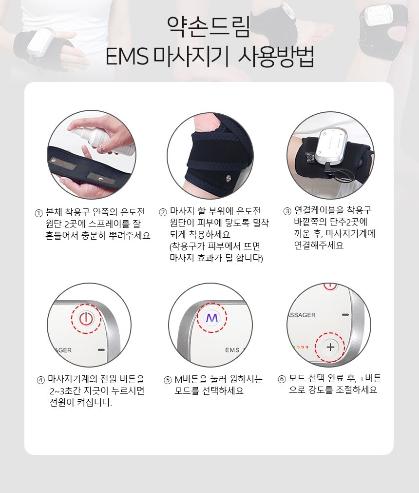 약손드림 EMS 저주파 마사지기 무릎 세트 슬개골 보호대