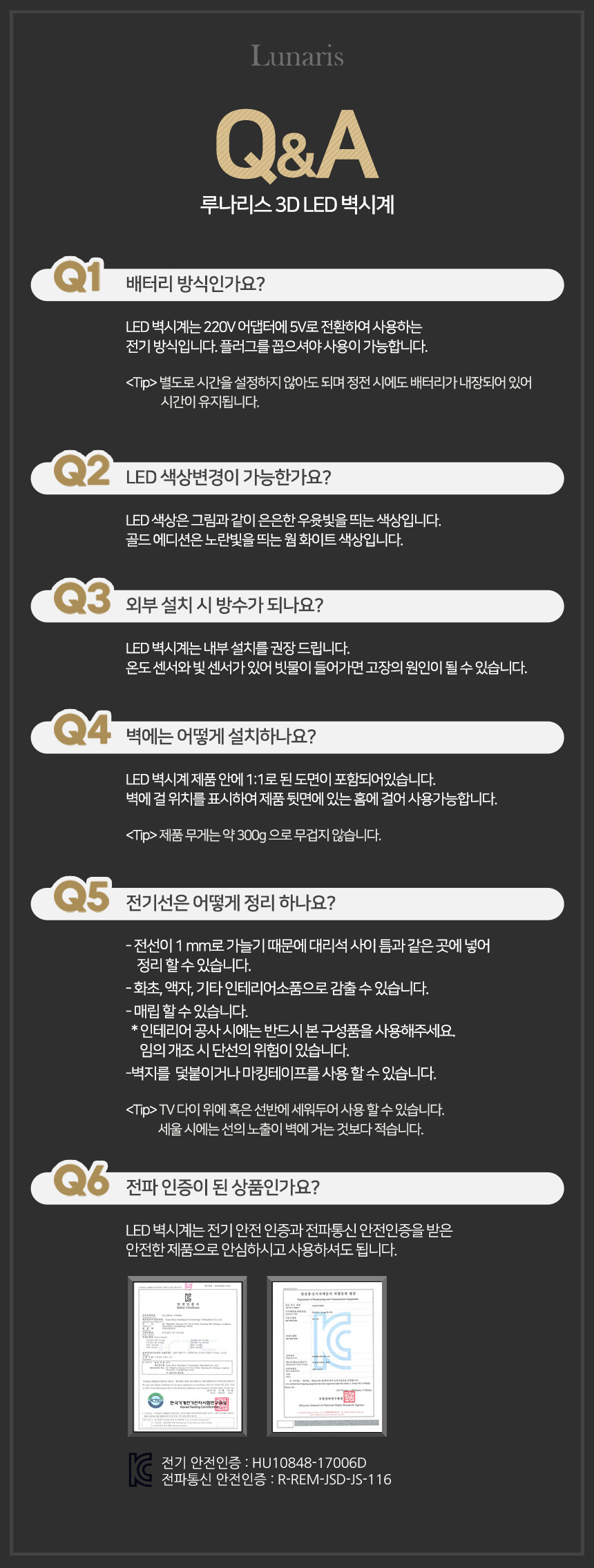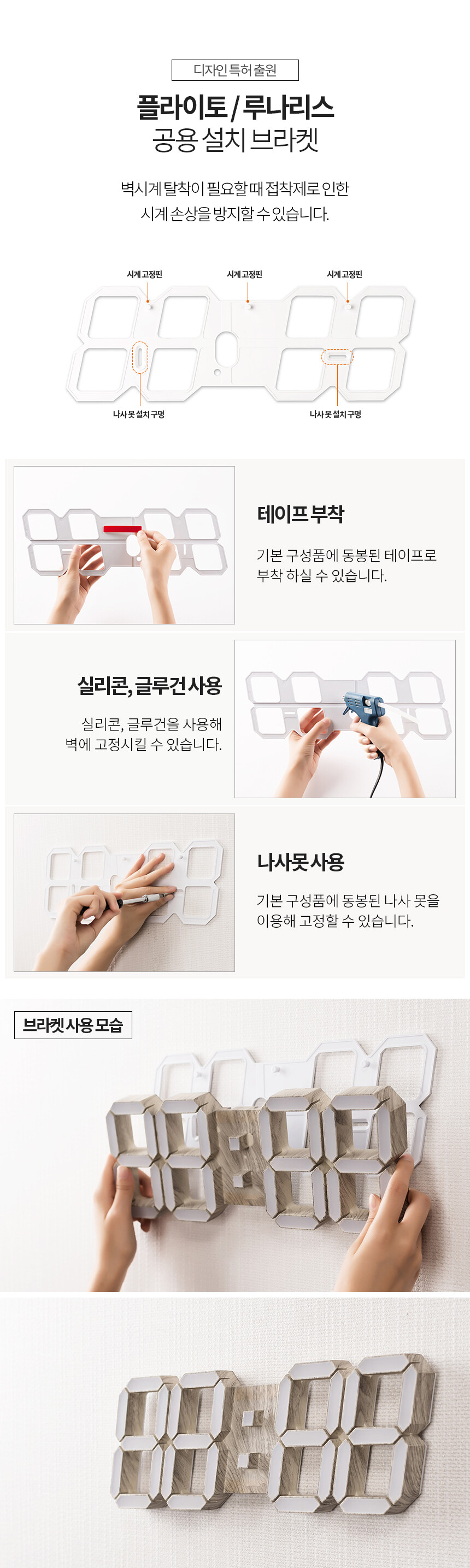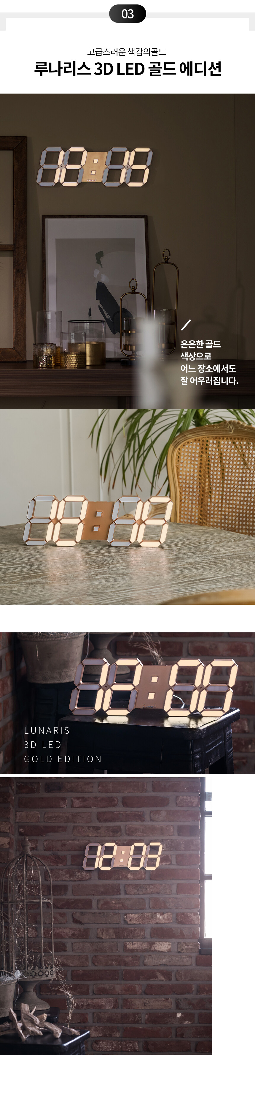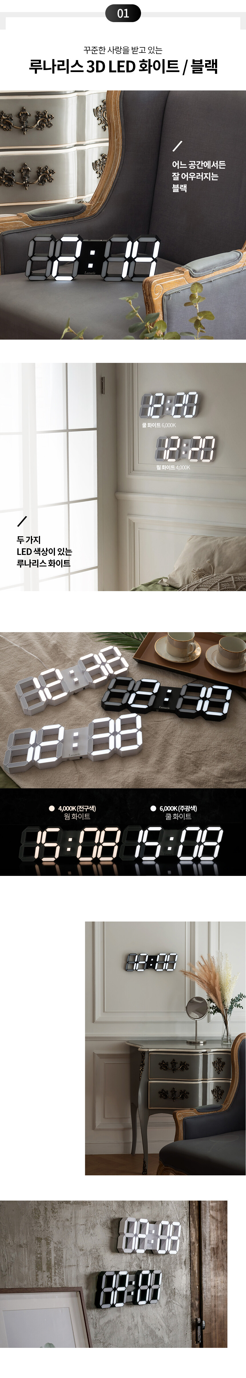 루나리스 3D LED 인테리어 디지털 벽시계 38cm