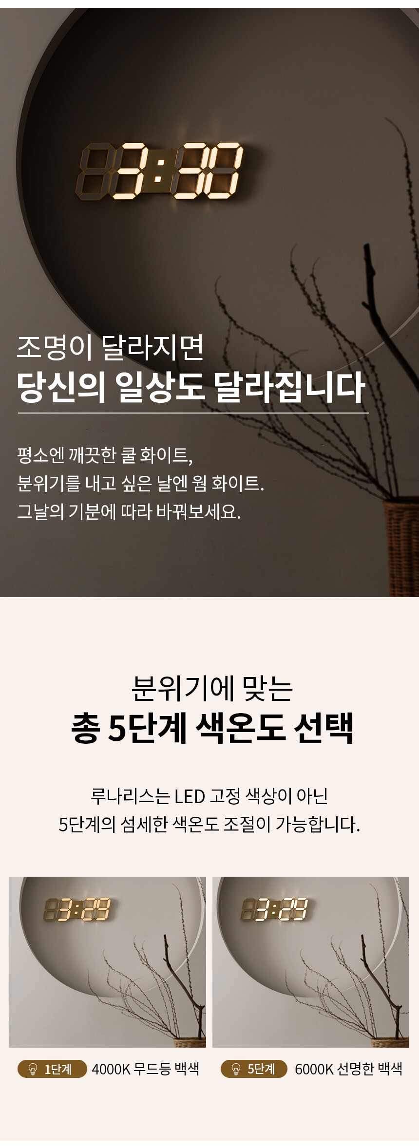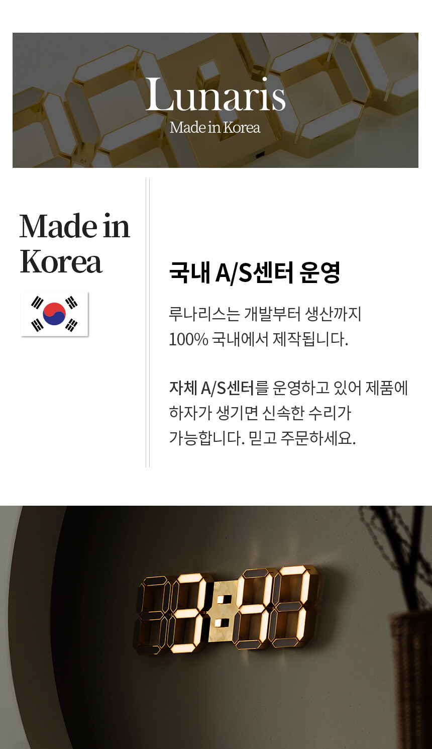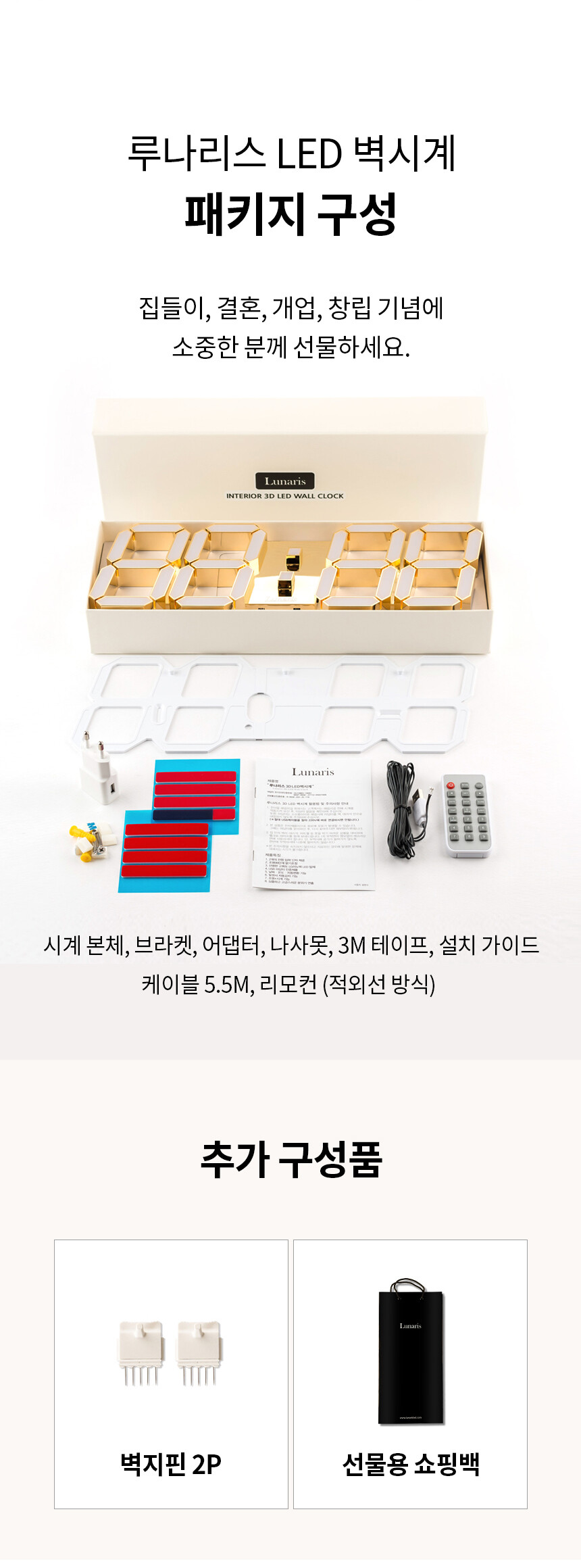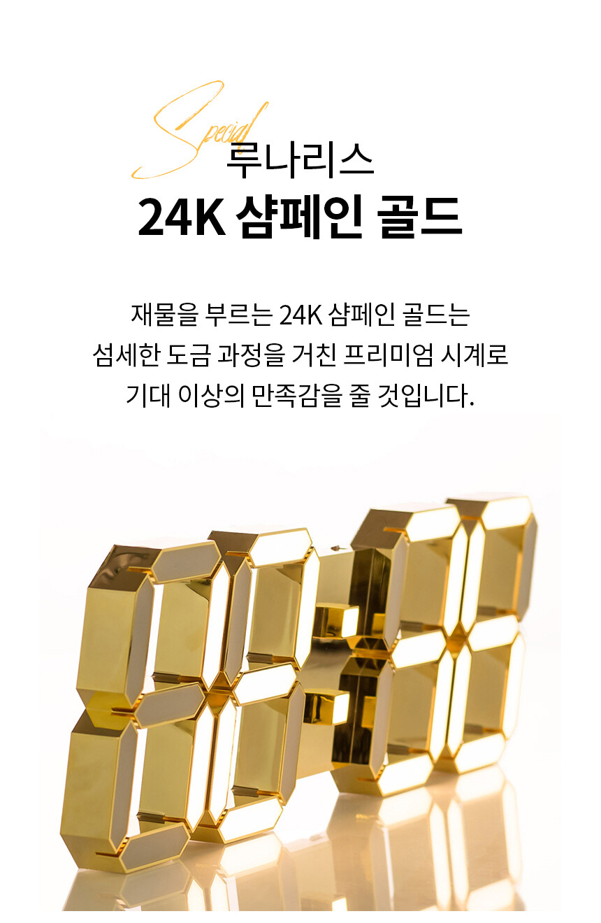 루나리스 24K 샴페인골드 3D LED 인테리어 벽시계 38cm
