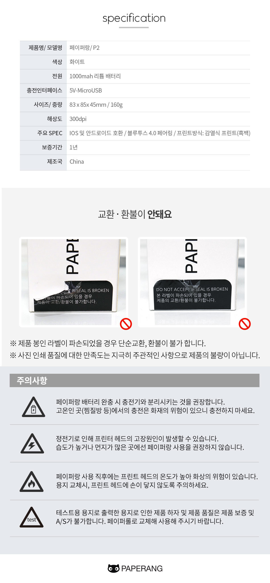 휴대용 블루투스 미니 프린터 페이퍼랑 P2