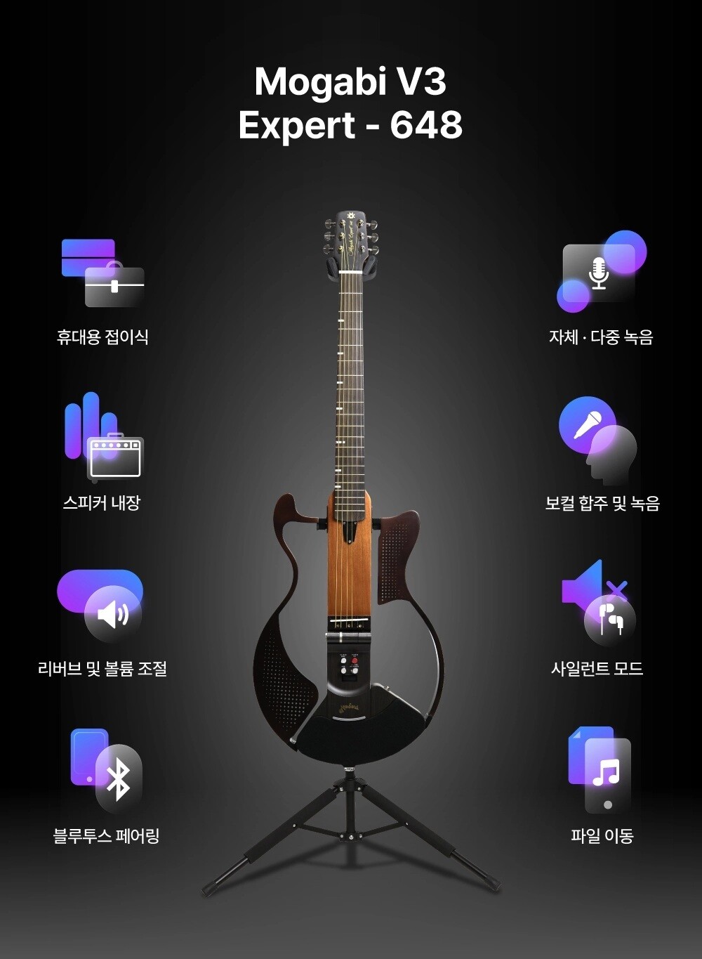 모가비 접이식 스마트 전자 기타 V3 익스퍼트 마이크 프리앰프 풀옵션