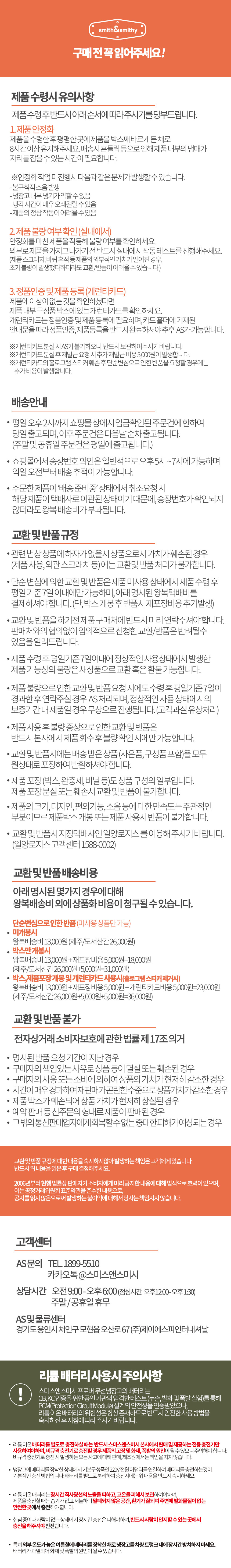 7. 고객님이 부재중(휴가, 출장, 외출등)이거나 통화가 안되서 반송되는 경우 왕복 택배비는 고객님 부담입니다.