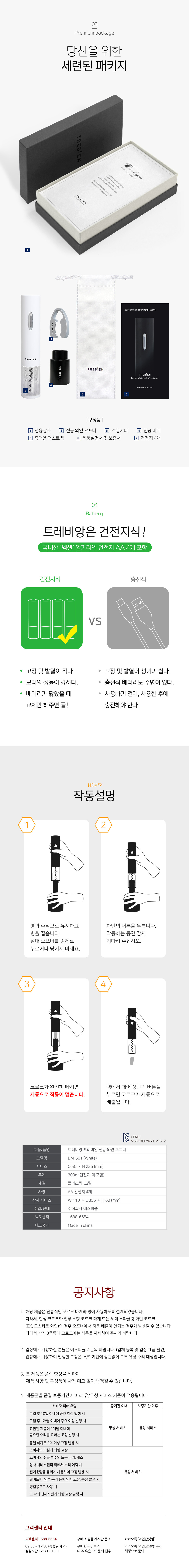 트레비앙 전동 와인오프너 DM-501W 호일커터 진공마개 세트