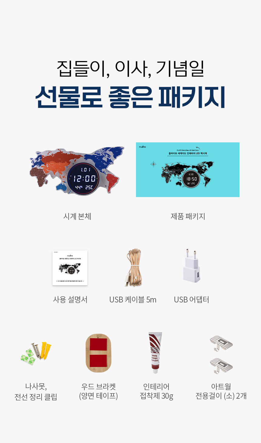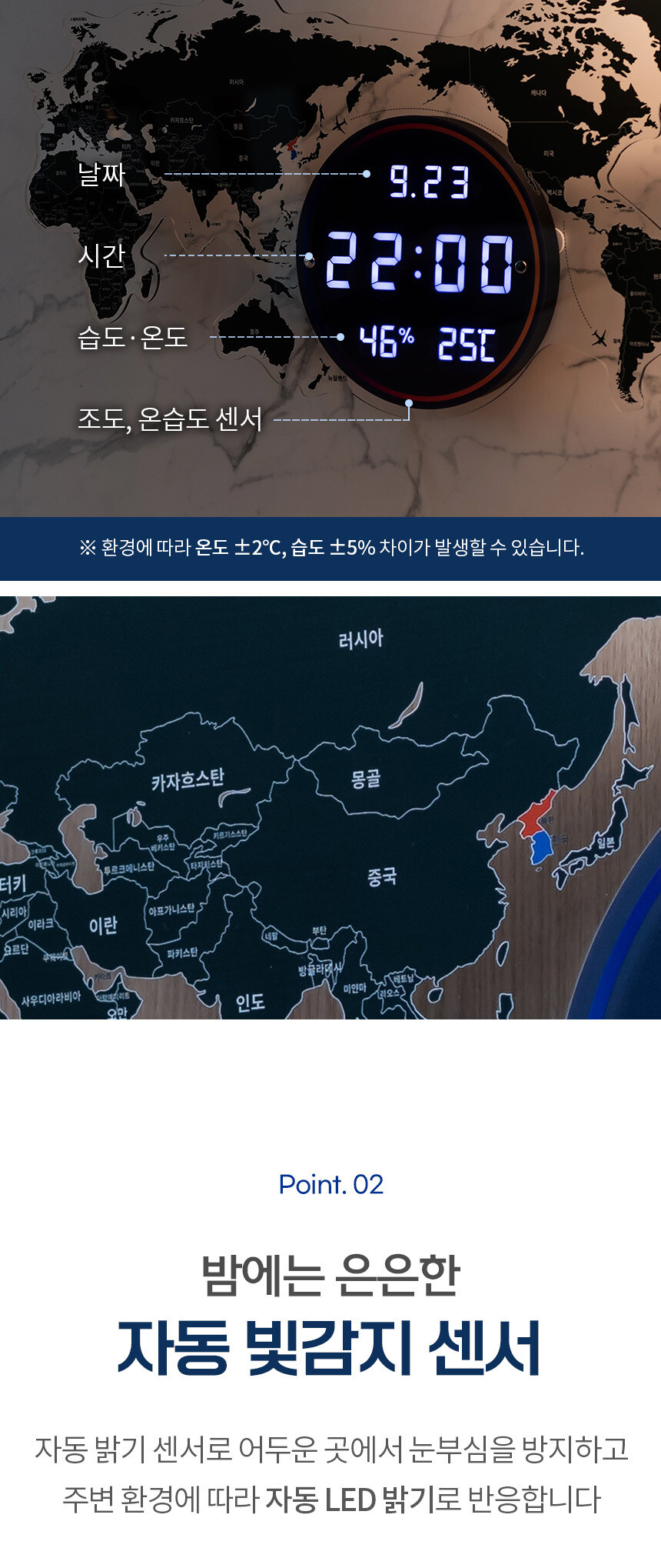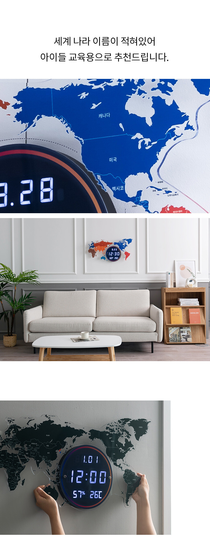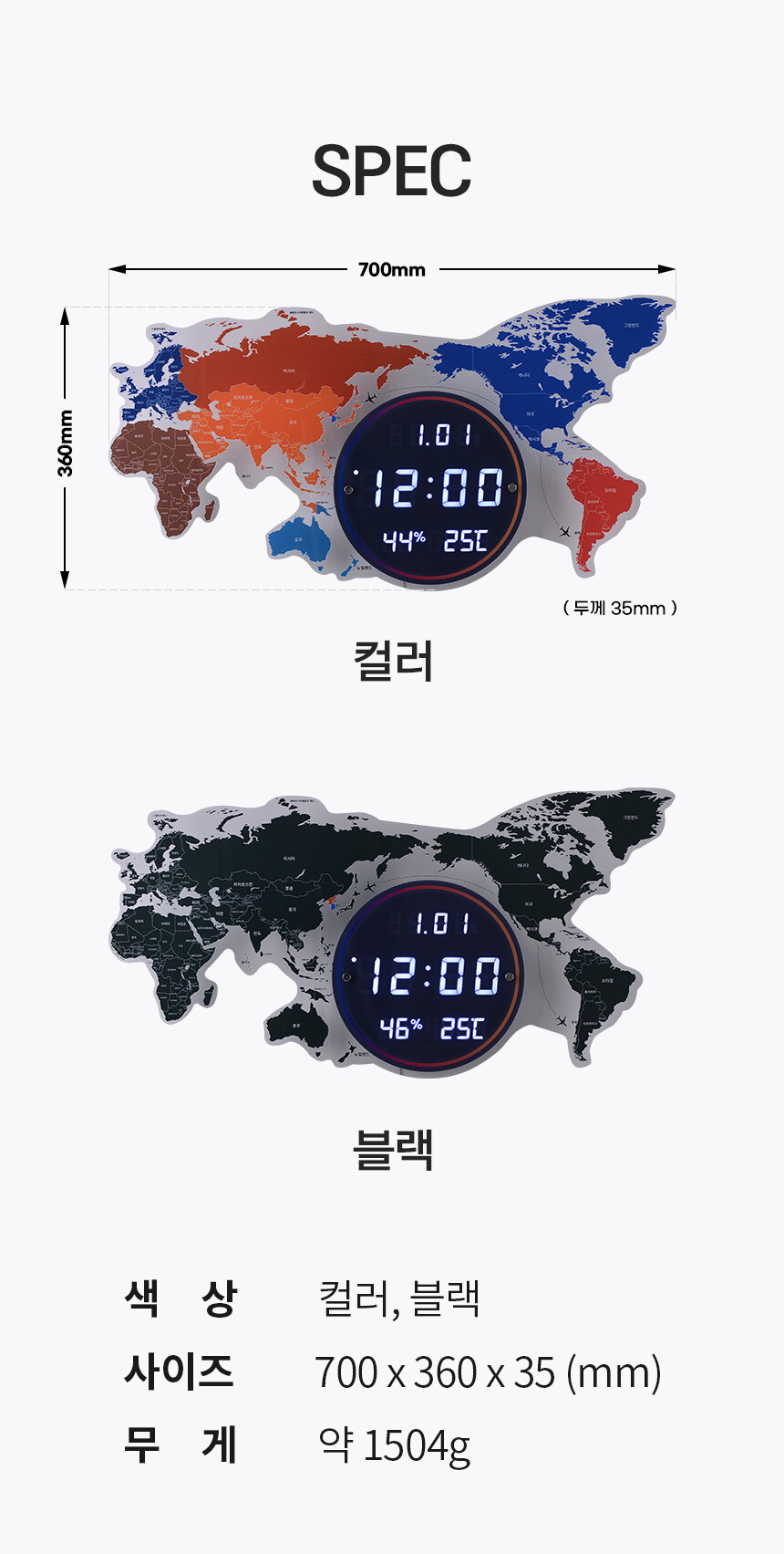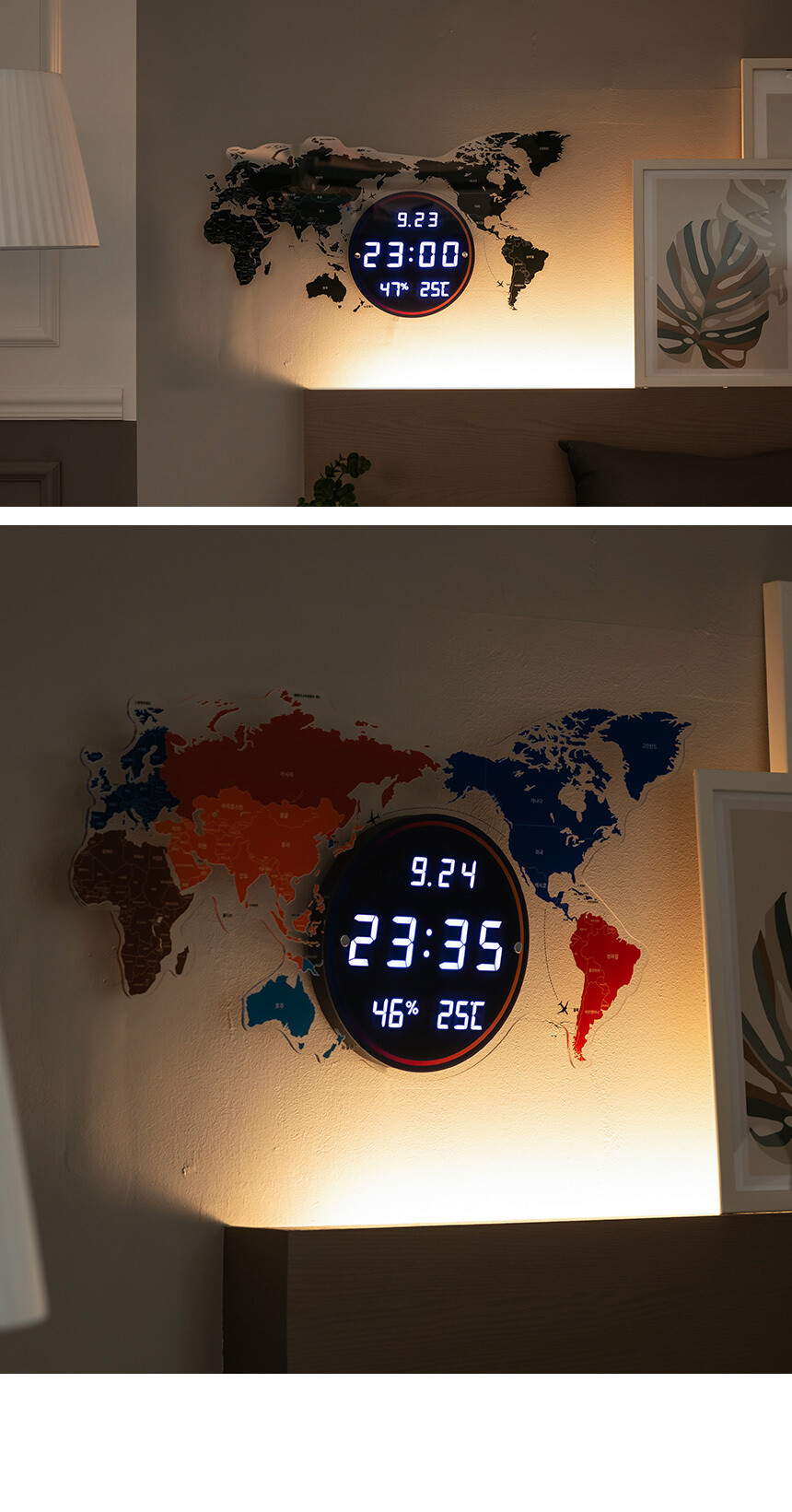 플라이토 세계지도 LED 인테리어 벽시계 70cm