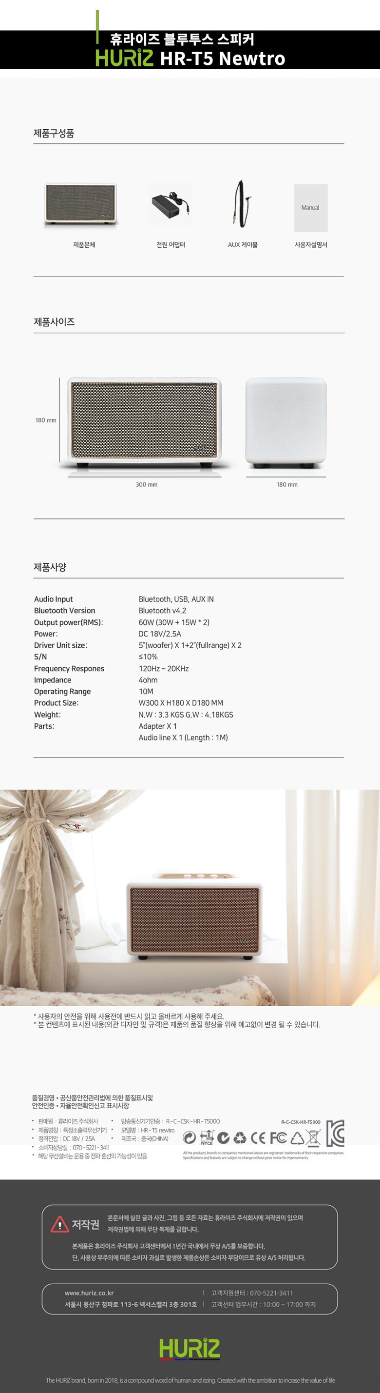 휴라이즈 블루투스 스피커 HR-T5 뉴트로